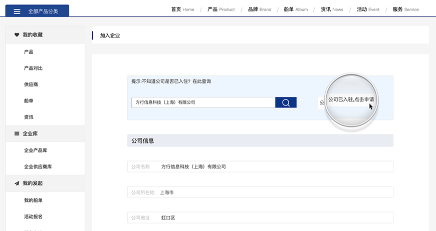 點(diǎn)擊【公司已入駐,點(diǎn)擊申請(qǐng)】