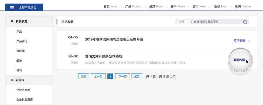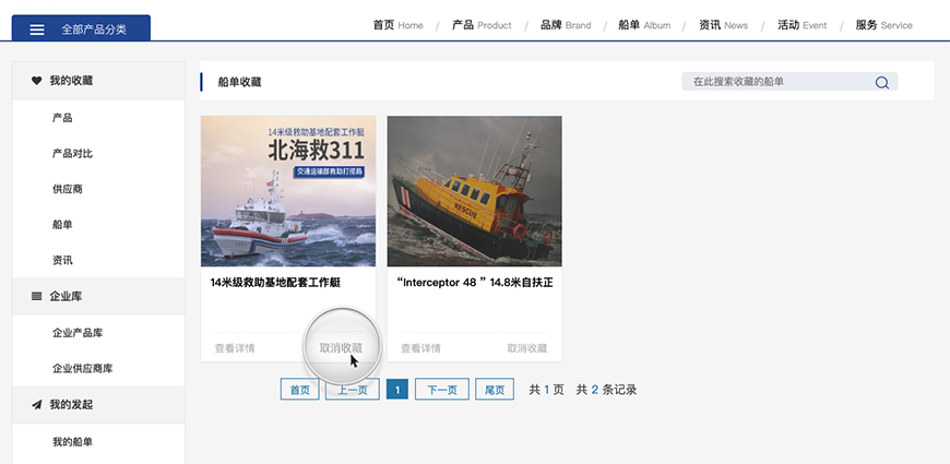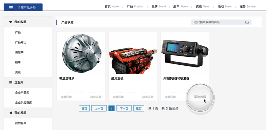 可以在我的收藏產(chǎn)品里面取消某個(gè)產(chǎn)品的收藏,并進(jìn)行搜索。