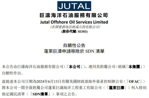 近日,蓬萊巨濤母公司巨濤海洋石油服務(wù)公司發(fā)布公告,蓬萊巨濤已經(jīng)聘請專業(yè)法律事務(wù)所,于2025年10月14日向美國財政部海外資產(chǎn)控制辦公室(OFAC)正式提交了移除于特別指定國民清單(SDN清單)的書面申請。當(dāng)前,蓬萊巨濤已停止涉及SDN清單事項項目的建造業(yè)務(wù)。