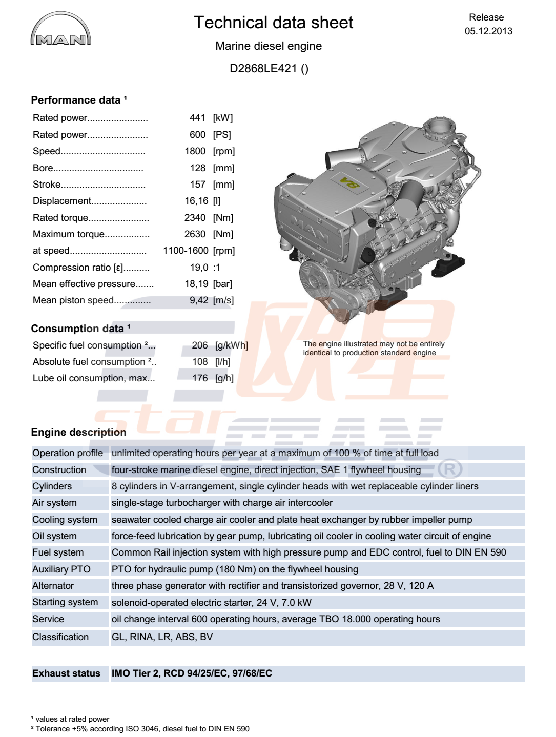 燃油消耗率: 206g/kwh 最大滑油消耗量: 176g/h