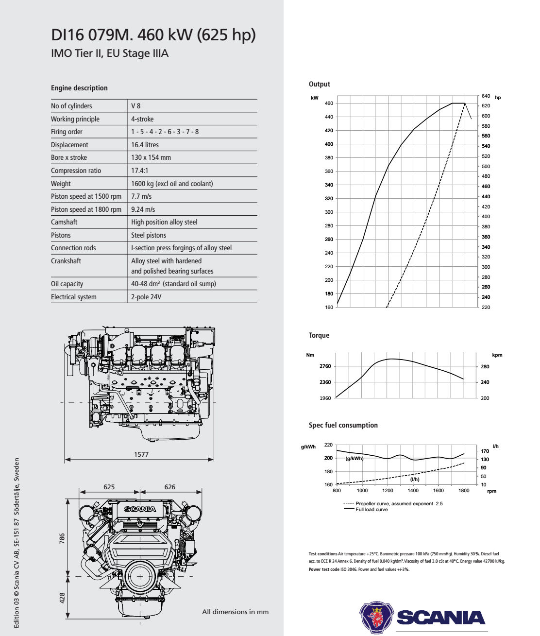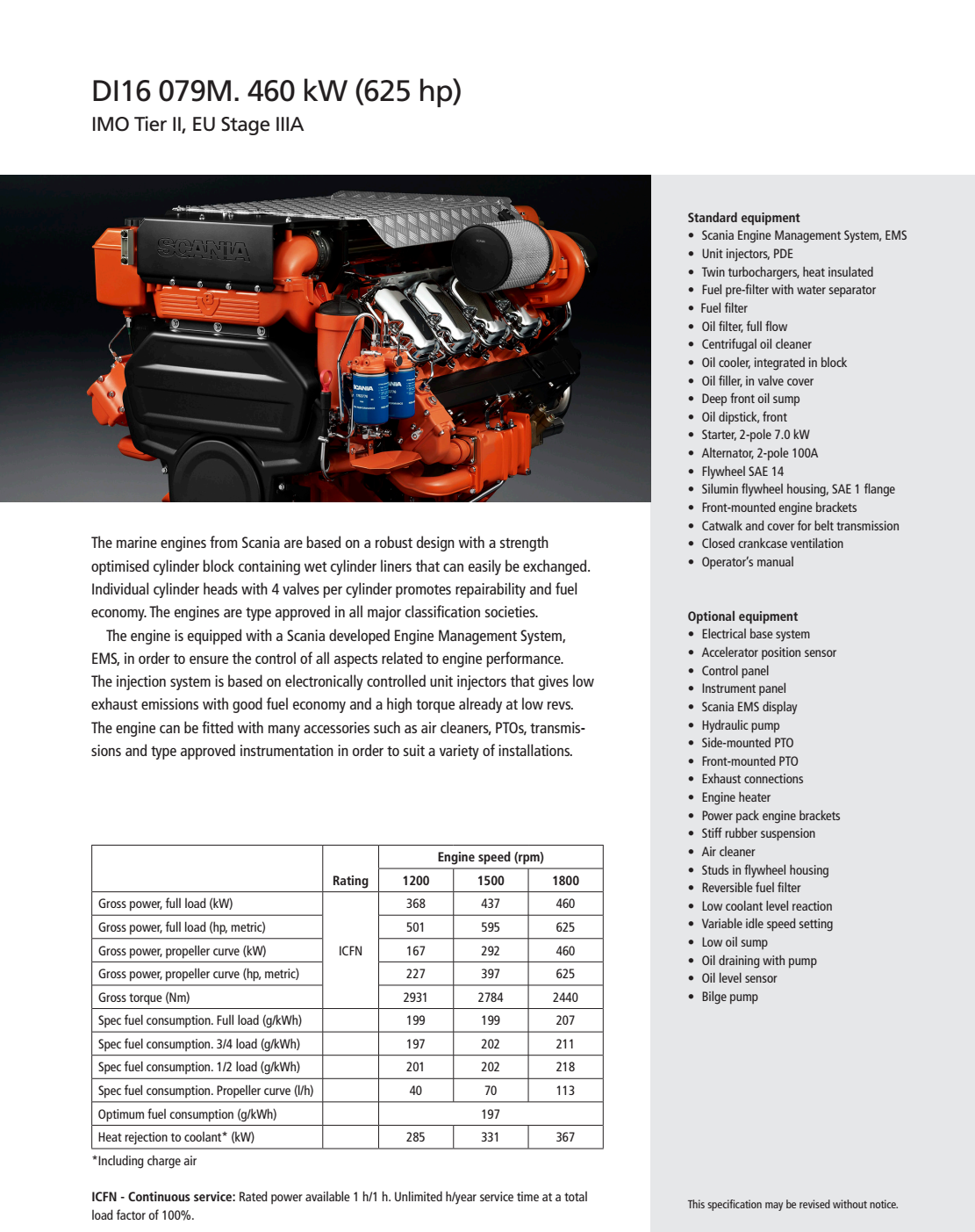 螺旋槳曲軸總輸出功率: 167~460kw/227~625hp(1200~1800rpm) 扭矩: 2440~2931Nm(1200~1800rpm)