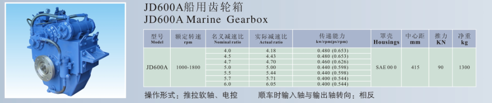 前進名義減速比: 6 輸入轉速: 1000-1800rpm
