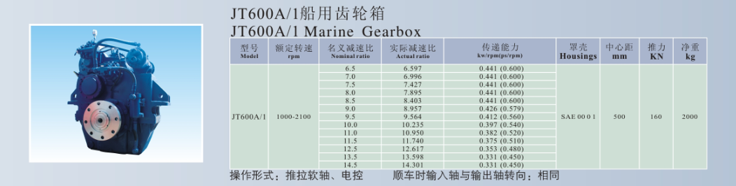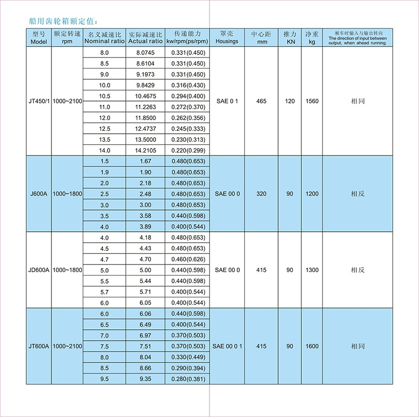 前進名義減速比: 6.5 輸入轉速: 1000-2100rpm