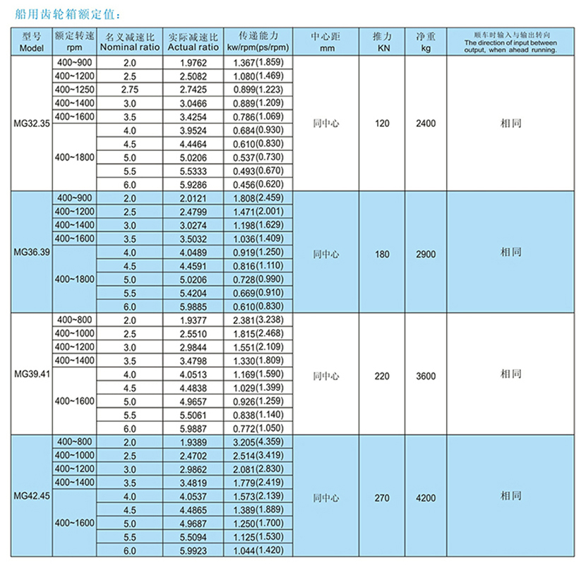 | 前進(jìn)名義減速比: | 8.5 | 輸入轉(zhuǎn)速: | 600-1600rpm |
