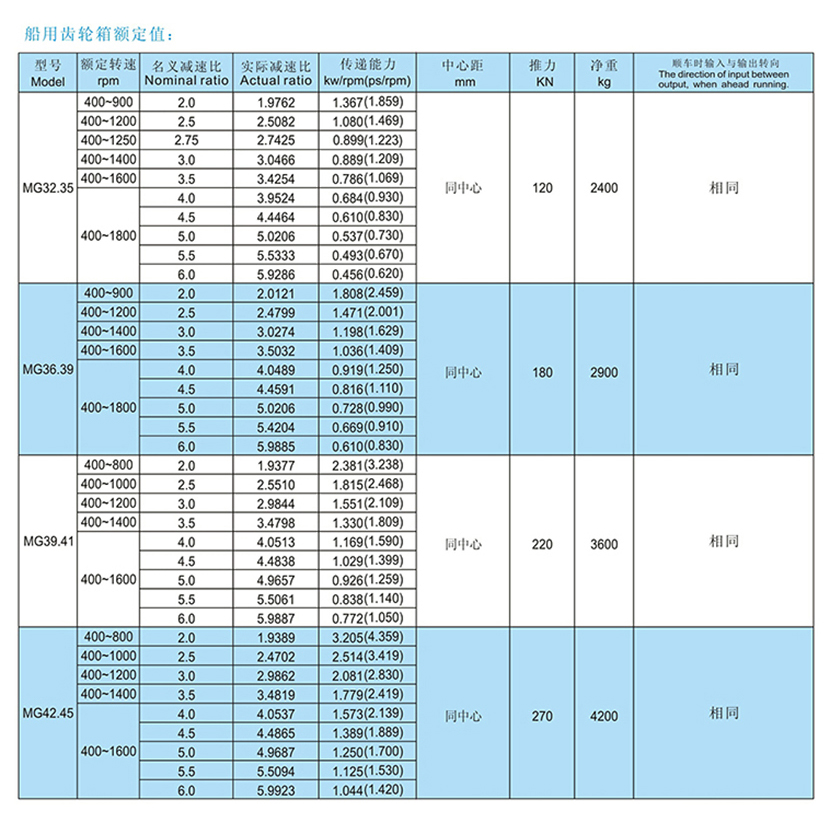 | 前進名義減速比: | 5 | 輸入轉速: | 400-1800rpm |