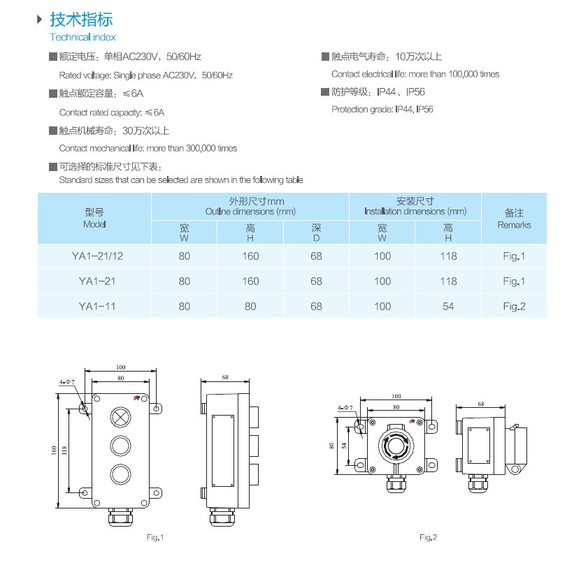 觸點電氣壽命: 10萬次以上 外形尺寸(寬高深): 80mm×80mm×68mm