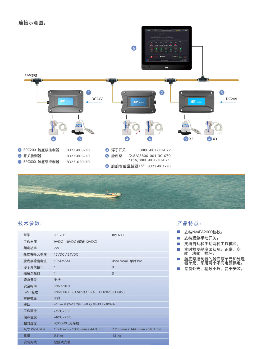 艙底泵輸入電壓: 24VDC 艙底泵輸出電流: 10A(MAX)