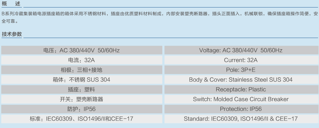 B型系列冷藏集裝箱電源插座箱不帶監視插座
