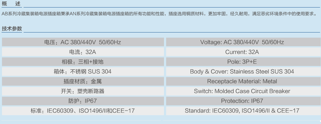 AB型系列冷藏集裝箱電源插座箱不帶監視插座