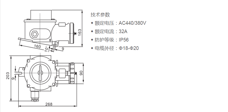 防護等級: IP56 電纜外徑: Φ18-Φ20
