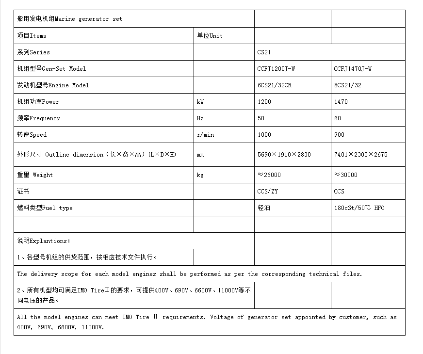 發動機型號: 6CS21/32CR 重量: ≈26000kg