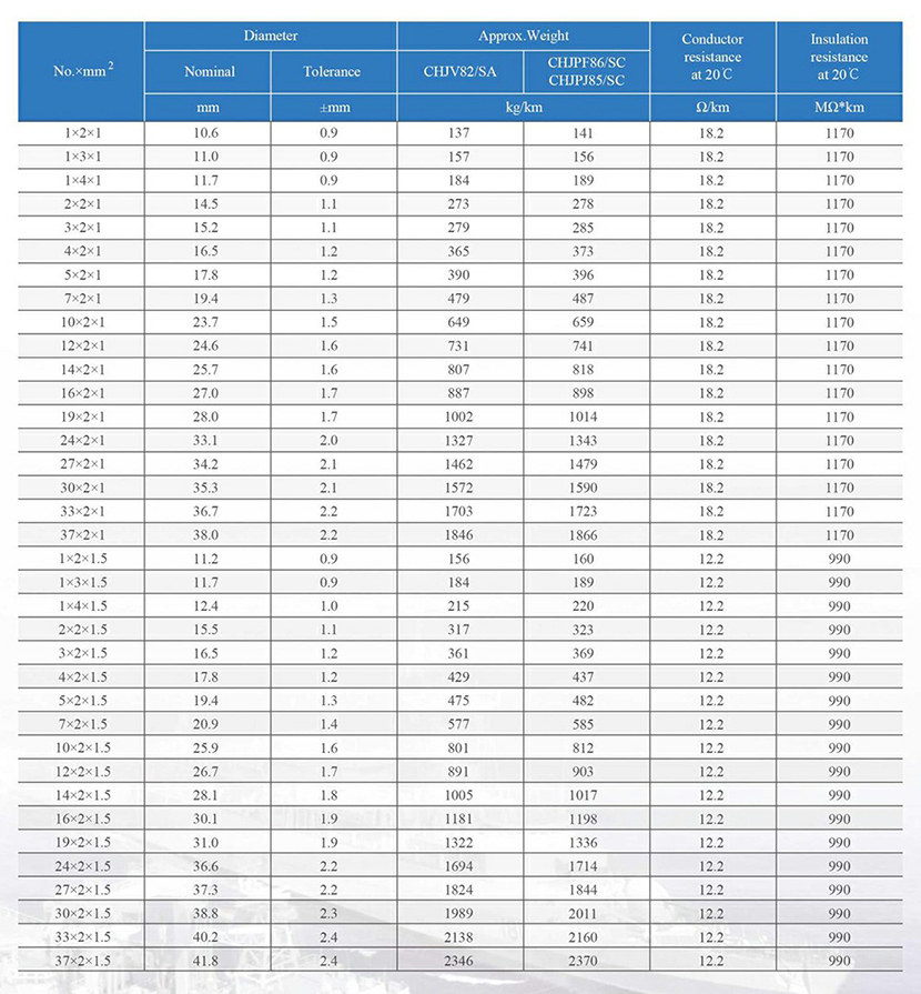 | 20℃時(shí)的導(dǎo)體電阻: | 12.2Ω/km | 20℃時(shí)的絕緣電阻: | 990MΩ×km |