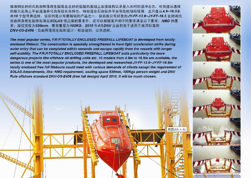| 6.65米玻璃鋼全封閉式自由降落救生艇 | |||