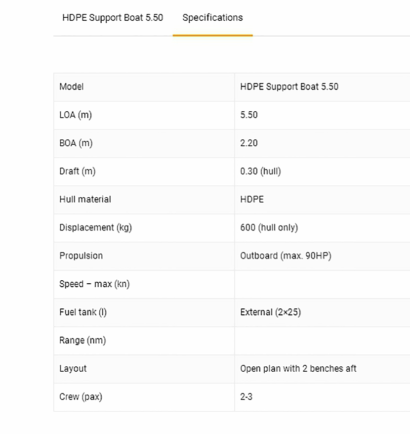 | 燃油容量: | External(2×25) | 推進裝置: | Outboard(max.90HP) |