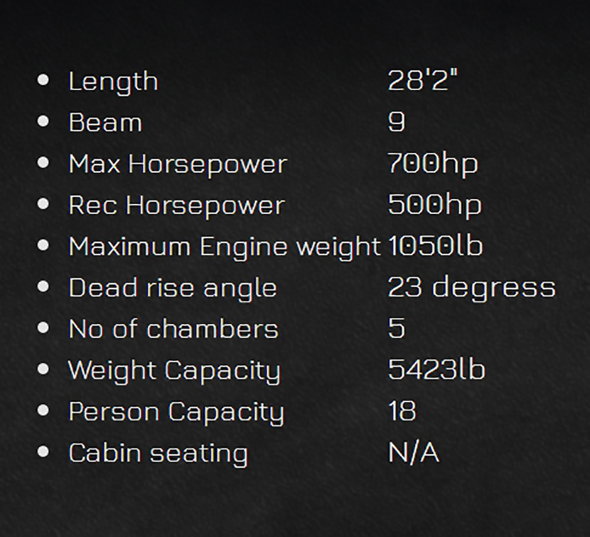 | 艙室數(shù): | 5 | 推薦馬力: | 500hp |