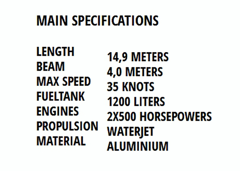 發動機功率: 2x500hp 推進裝置: 噴泵