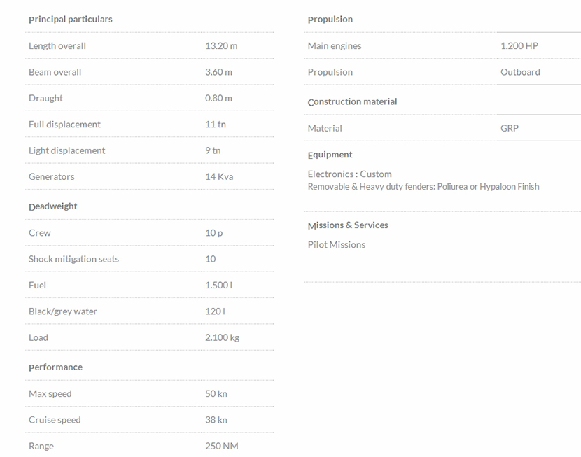 | 總長(zhǎng): | 13.20m | 航速: | 38kn |