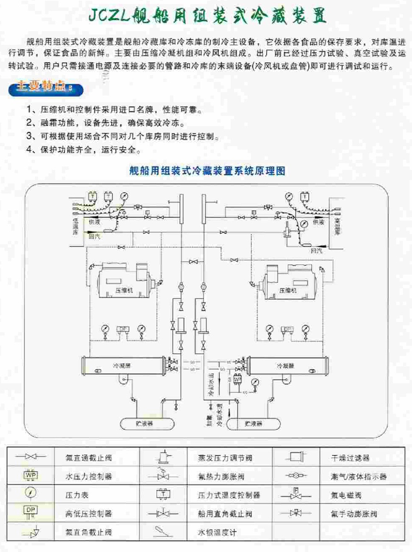 冷凝器型式: 臥式殼管式,具有高效冷凝儲液作用 冷凝器進水溫度: ≤32 ℃