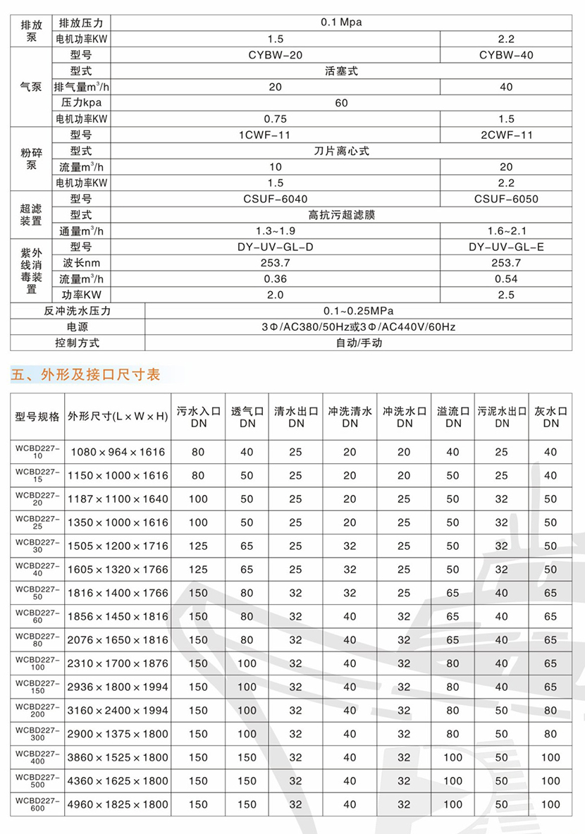 超濾通量: 1.6~2.1m3/h 消毒裝置型號: DY-UV-GL-E