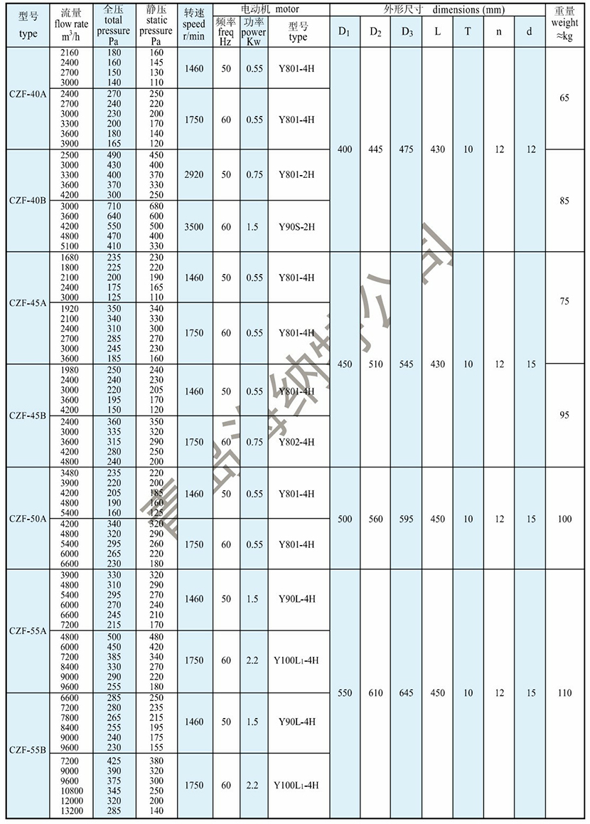 | 全壓: | 245Pa | 電機(jī)功率: | 0.55kW |