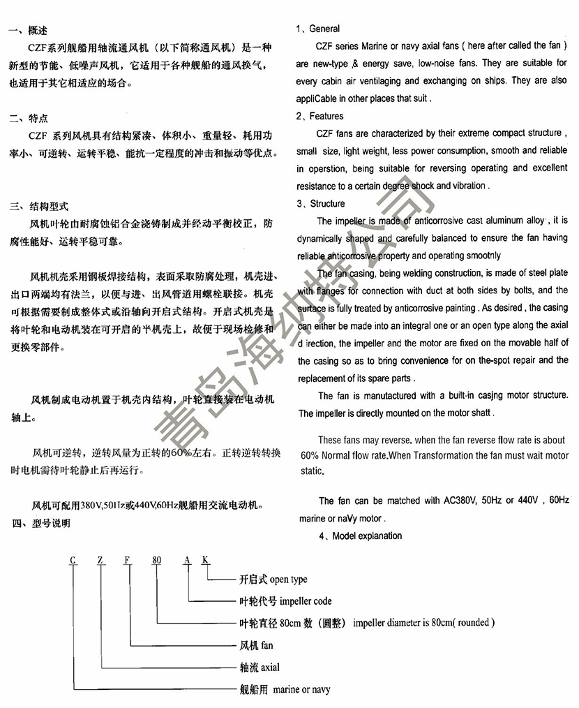 | CZF系列艦船用軸流通風(fēng)機(jī) | |||