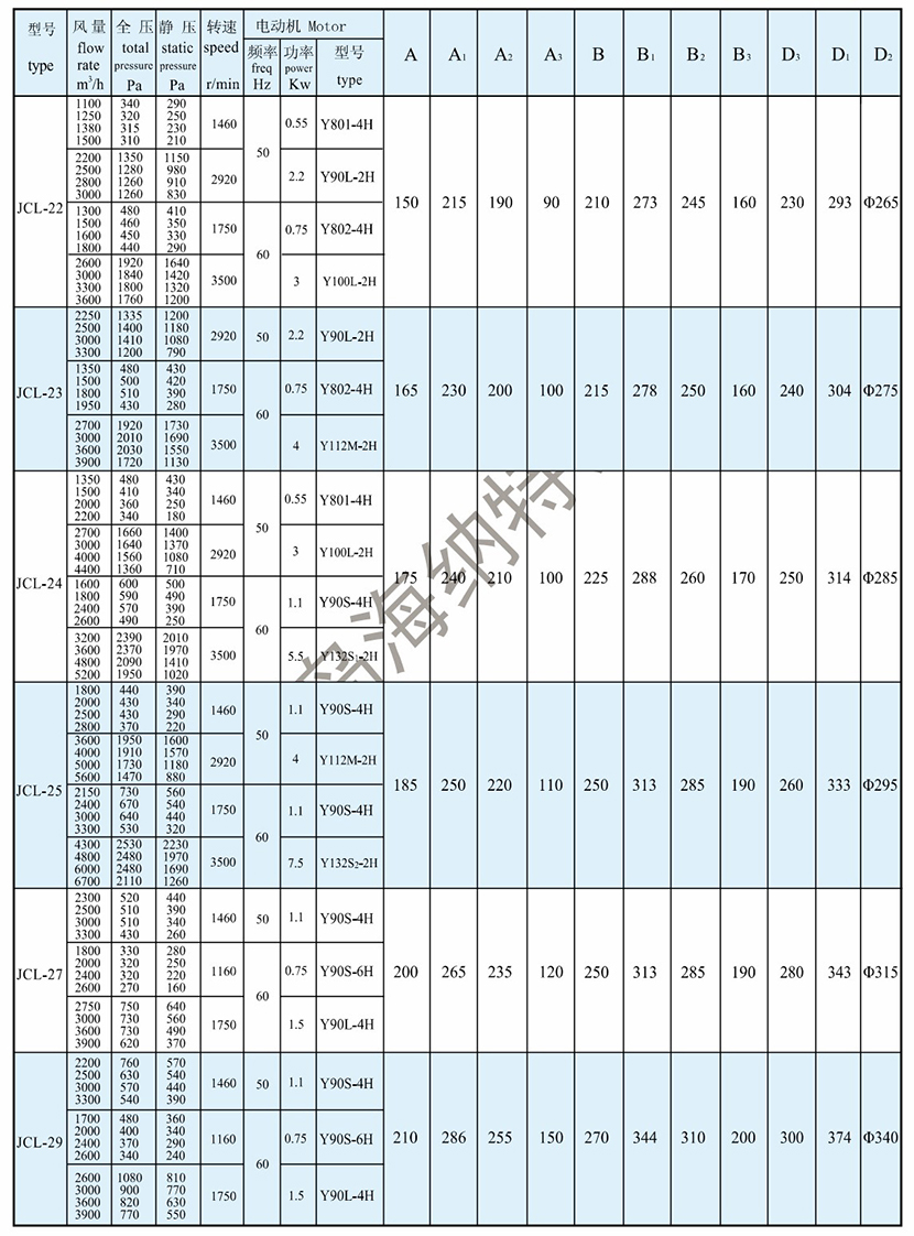 靜壓: 1150Pa 電機頻率: 50Hz
