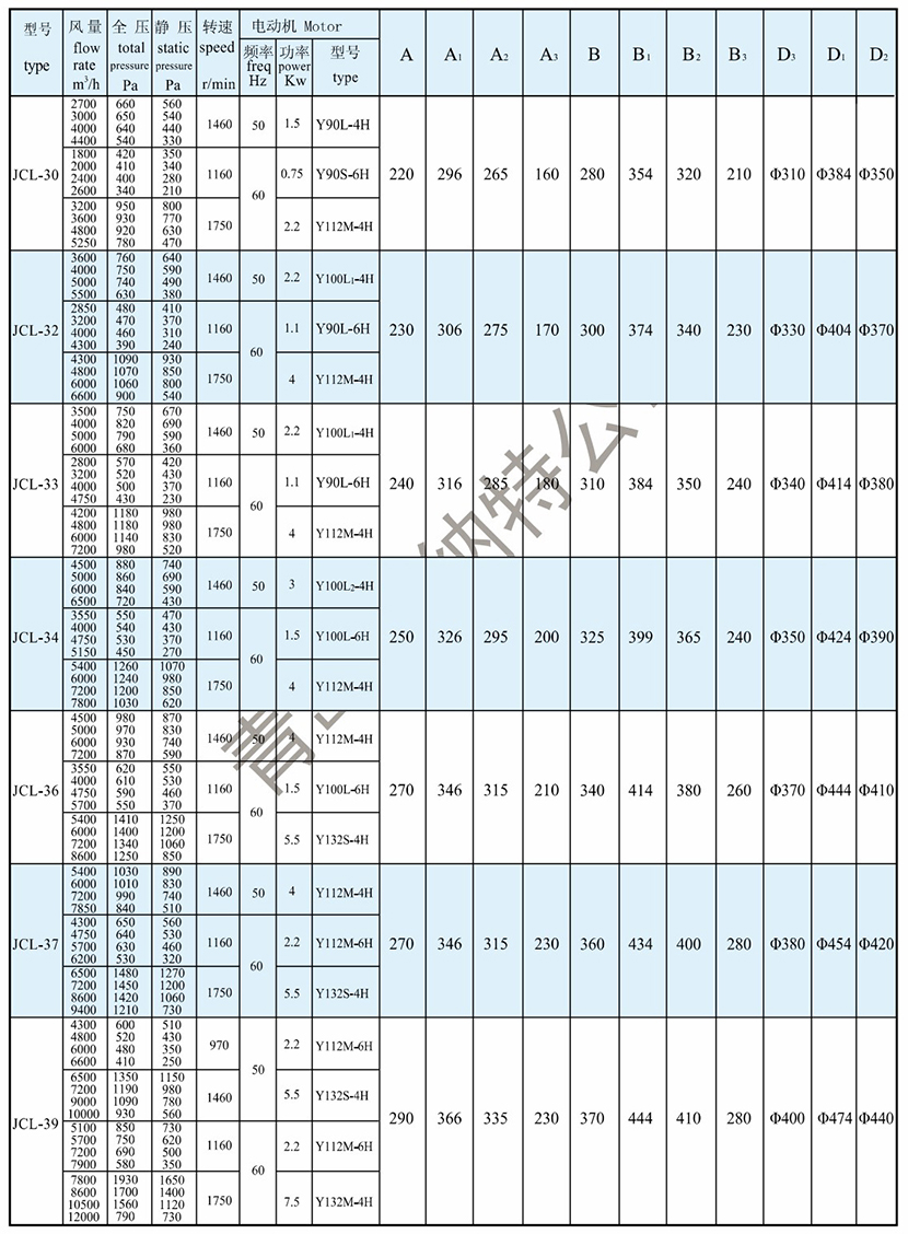靜壓: 430Pa 電機頻率: 50Hz
