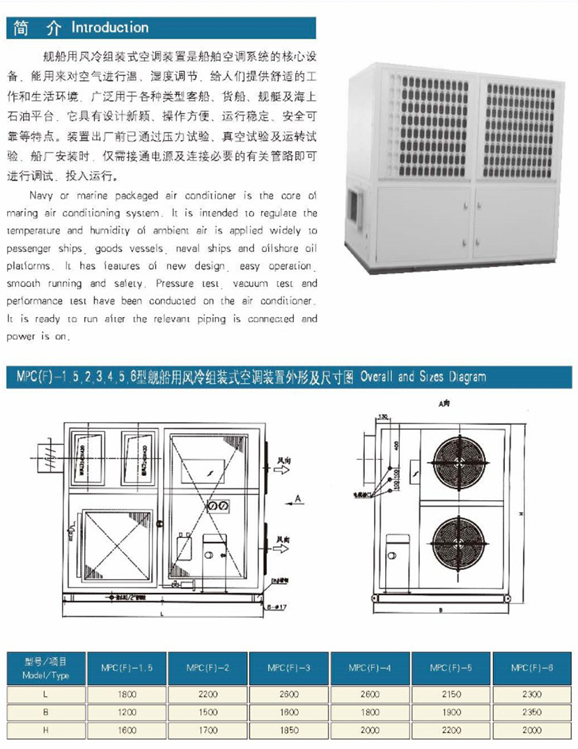 機外余壓: 400Pa 制冷介質: R22(R404A R134a R407C)