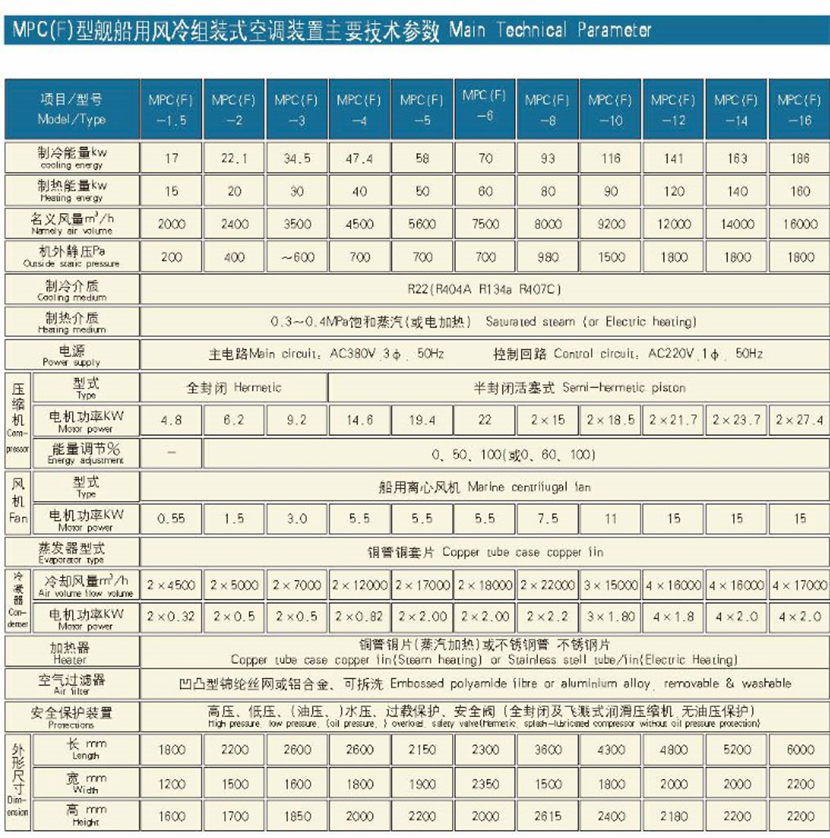 機外余壓: 980Pa 制冷介質: R22(R404A R134a R407C)