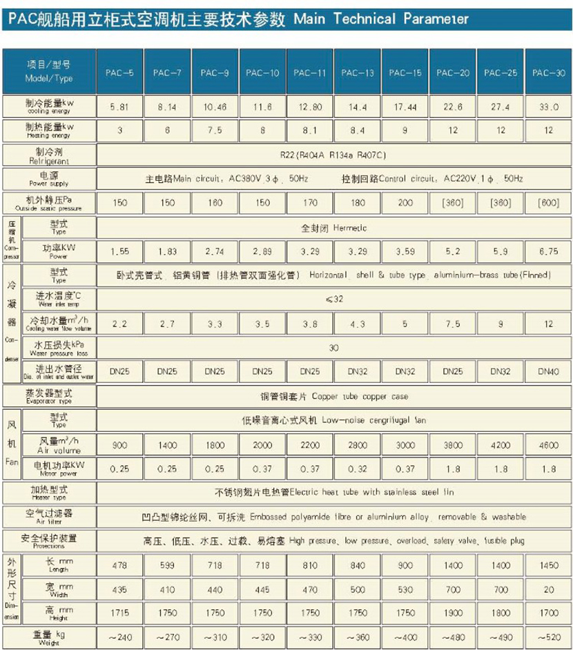 控制電路電源: AC220V 1Φ 50Hz 安全保護裝置: 高壓、低壓、水壓、過載、易熔塞