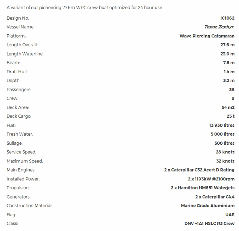 | 發動機功率: | 3×1450HP/3×1081kw@2300rpm | 推進裝置: | 3×Propellers |