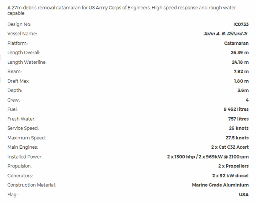 發動機功率: 2×1300bhp/2×969kw@2100rpm 推進裝置: 2×Propellers