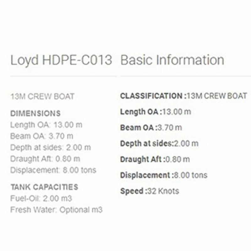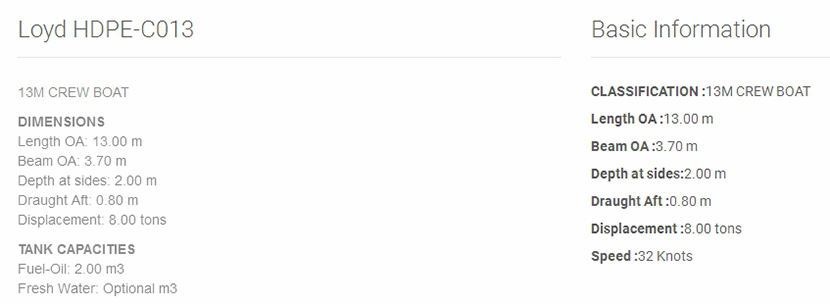 總長: 13.00m 航速: 32kn