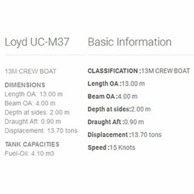 總長(zhǎng): 13.00m 航速: 15kn