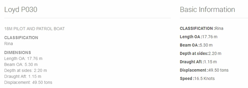 總長: 17.76m 航速: 16.5kn