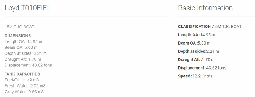 | 總長: | 14.95m | 航速: | 12.2kn |