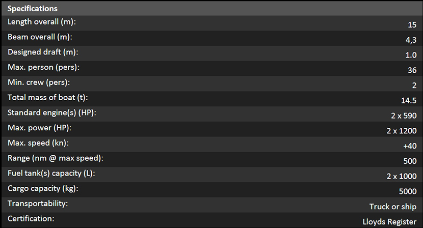 總長: 15m 航速: 40kn