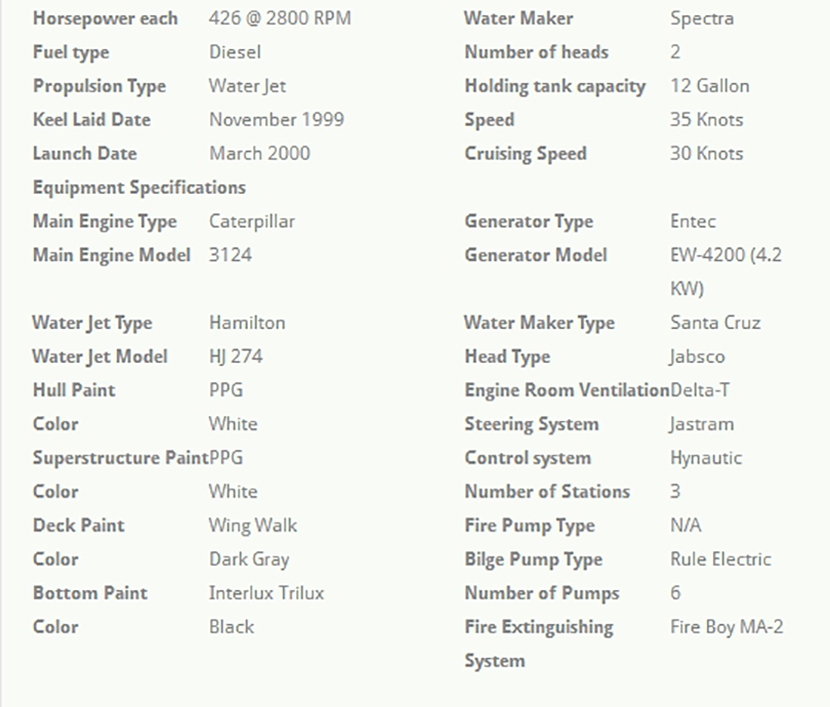 | 最大乘員: | 6p | 油箱容積: | 400加侖 |