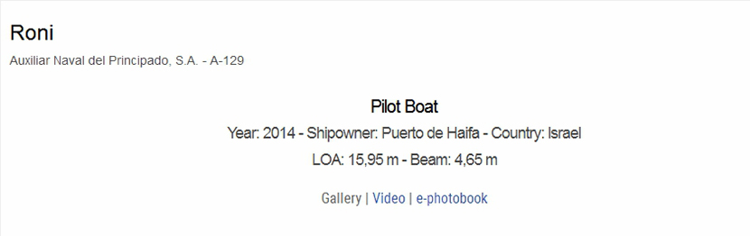 | 總長: | 15.95m | 船東: | Puerto de Haifa |