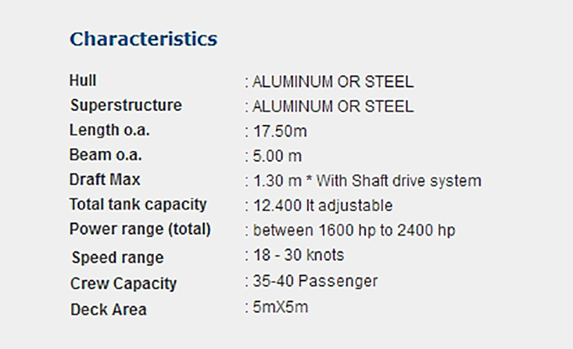 船組人員: 35-40 發動機功率: 1600-2400hp