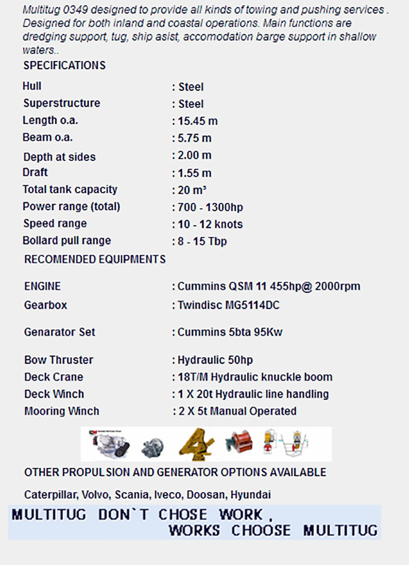 船體材料: 拖力: 8-15Tbp