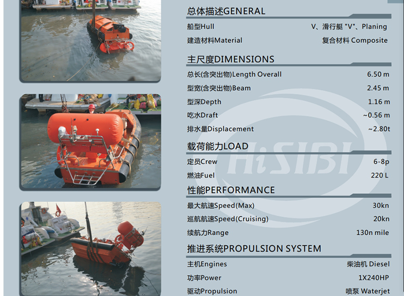 | 6.5米船載艇、自扶正、單點收放式 | |||