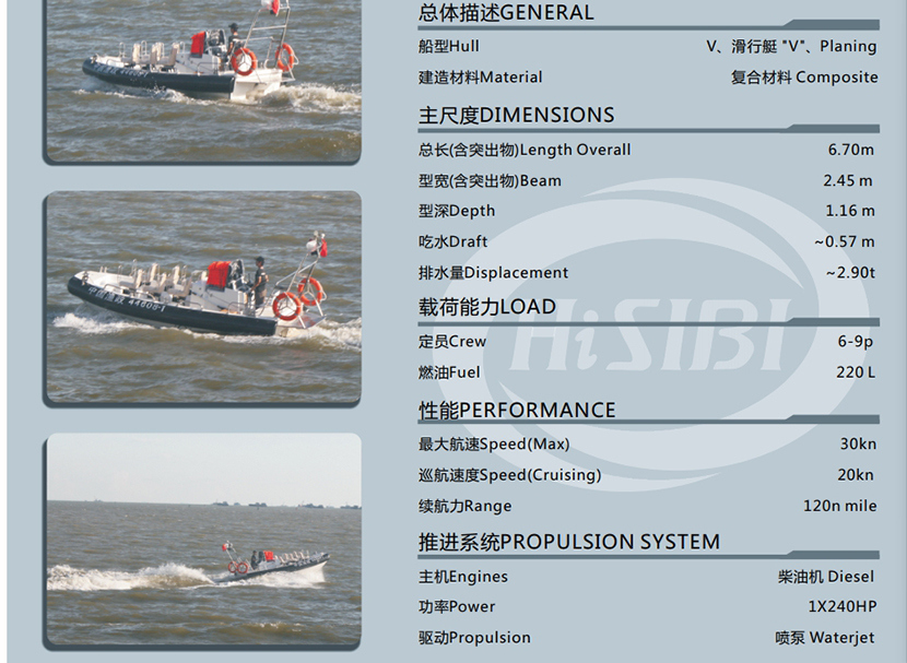 發動機功率: 1×240hp 推進裝置: Waterjet