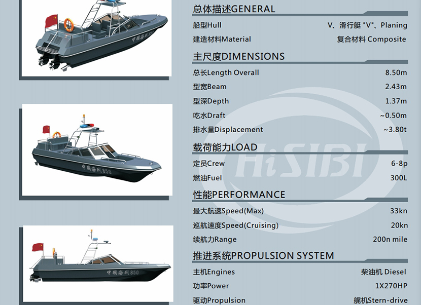 8.5米高速巡邏艇、中V船型