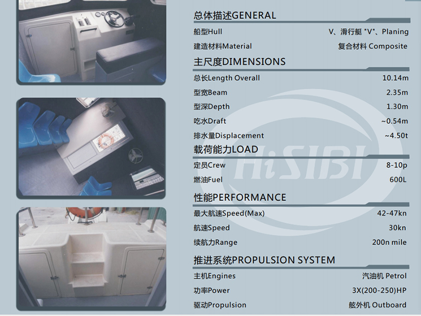 發動機功率: 3×(200-250)hp 推進裝置: Outboard