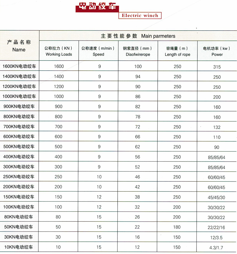 | 鋼索直徑: | 56mm | 繩容量: | 250m |