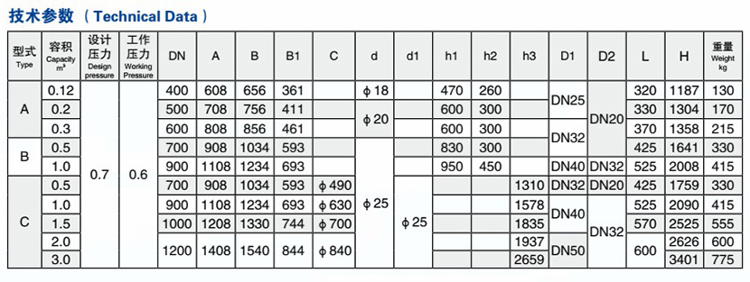 工作壓力: 0.6MPa 重量: 170kg