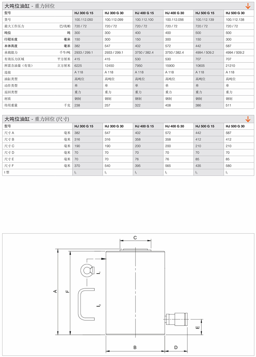 最大工作壓力: 720巴/72兆帕 第一段行程長度: 300 毫米