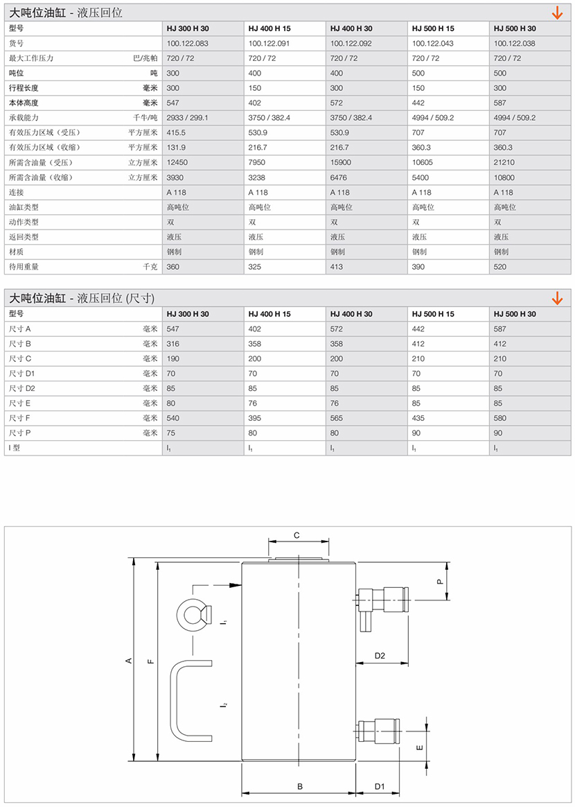 最大工作壓力: 720巴/72兆帕 第一段行程長度: 150 毫米