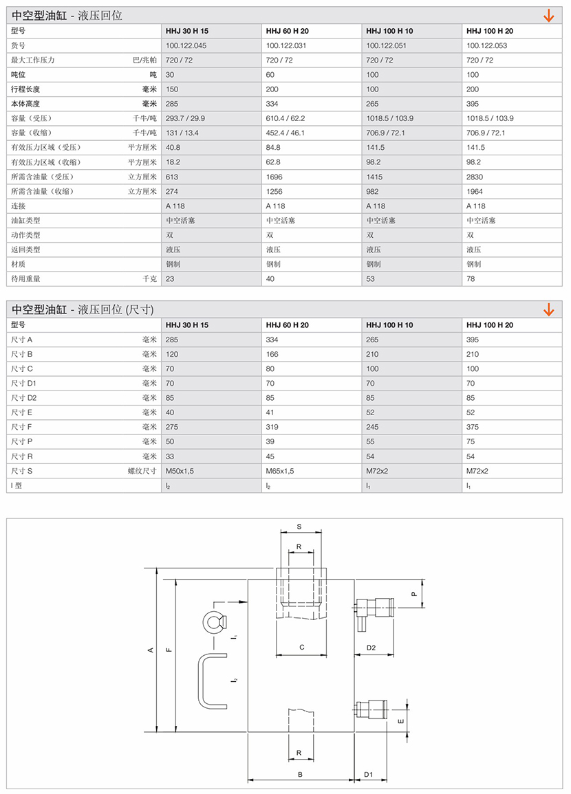 最大工作壓力: 720巴/72兆帕 第一段行程長度: 100 毫米